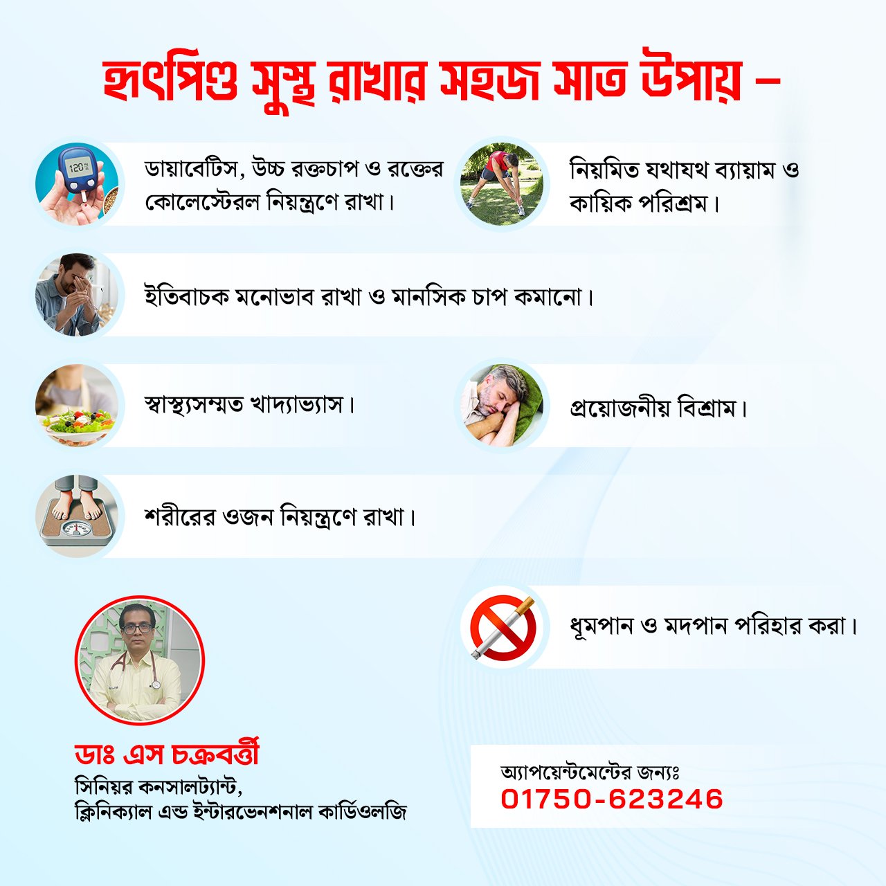 Get reliable heart-health tips, patient guidance, and important updates directly from Dr. S. Chakrabarty.